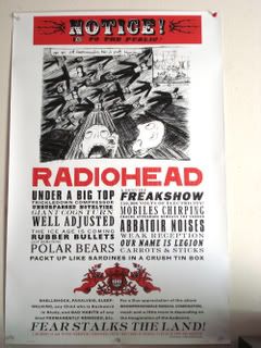 Eventually, Thom Yorke came out in all his glory! Wearing red pants, a black tee and chucks, might I add. ;] I choked up as they broke into song. The light show was amazing. The odd bars WERE lights and there was a screen in the background feeding us a live feed of their faces, the entire thing was surreal. I cried during Videotape, just as I knew I would.